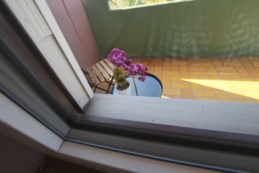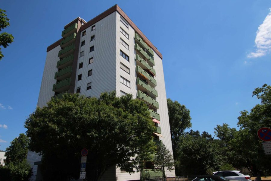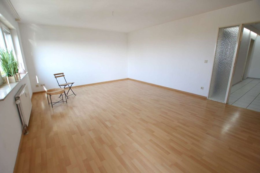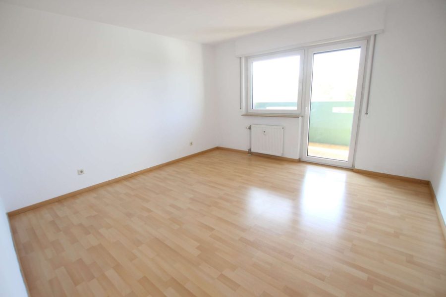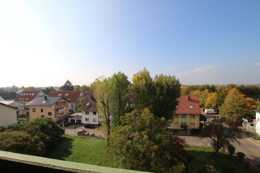 Das große Wohnzimmer mit zimmerbreiten Fensterflächen, hat Zugang zu einem geräumigen West-Balkon, der ihnen eine sensationelle Aussicht bis in die Pfalz ermöglicht und zum Ausruhen einlädt. Ebenso hat das quadratische Schlafzimmer Balkonzugang, welches für große Schrankwände Stellfläche bietet. Hier wurden die Fenster 2022 komplett erneuert.