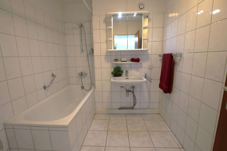 Ergänzt wird diese Wohneinheit durch ein Badezimmer mit Wanne, einem Waschbecken und WM- Anschluss sowie einem separaten WC.